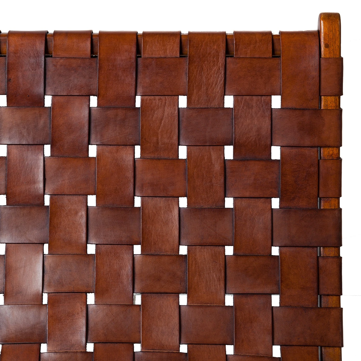 Fauteuil design Bourbourg I en cuir tressé et teck massif – marron cognac