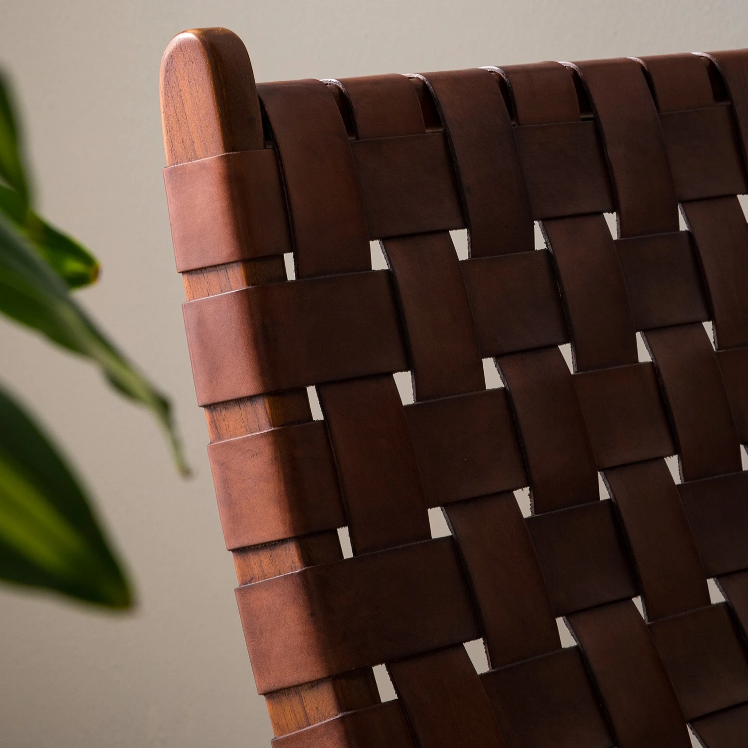- Le fauteuil design Bourbourg I allie esthétique et confort avec son cuir tressé et son cadre en teck massif.