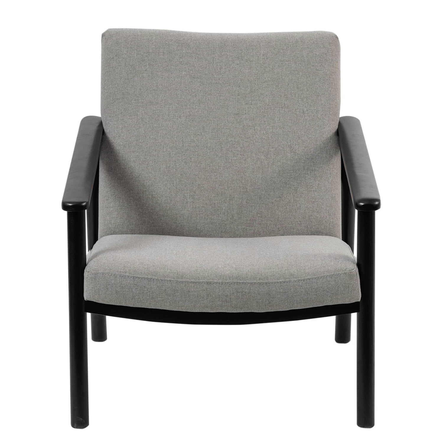 - Fabriqué en tissu gris de haute qualité et en hêtre massif noir, ce fauteuil offre durabilité et style.