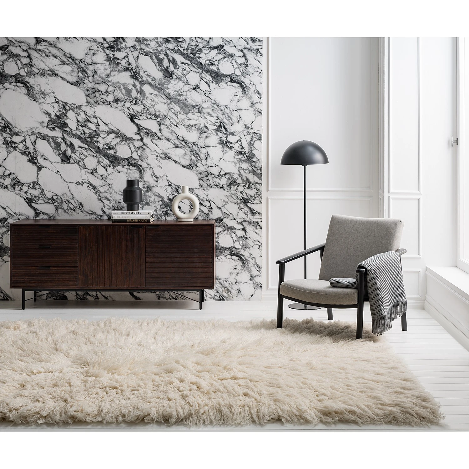 Fauteuil Etah – Tissu Gris et Hêtre Massif Noir | Design Confortable par Studio Copenhagen