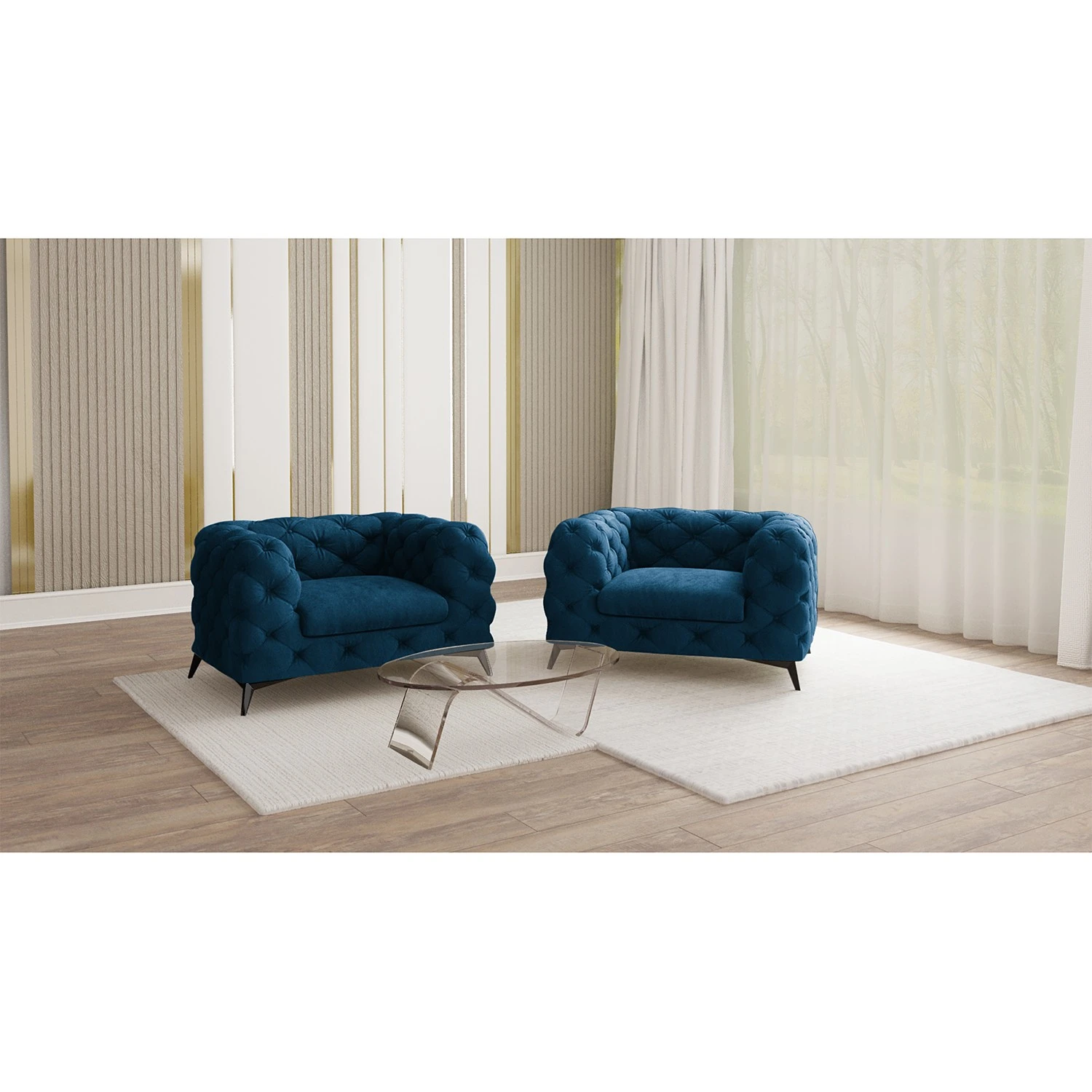 - Avec son coloris bleu marine intemporel, ce fauteuil 1 place s’intègre parfaitement dans tout type de décoration intérieure.