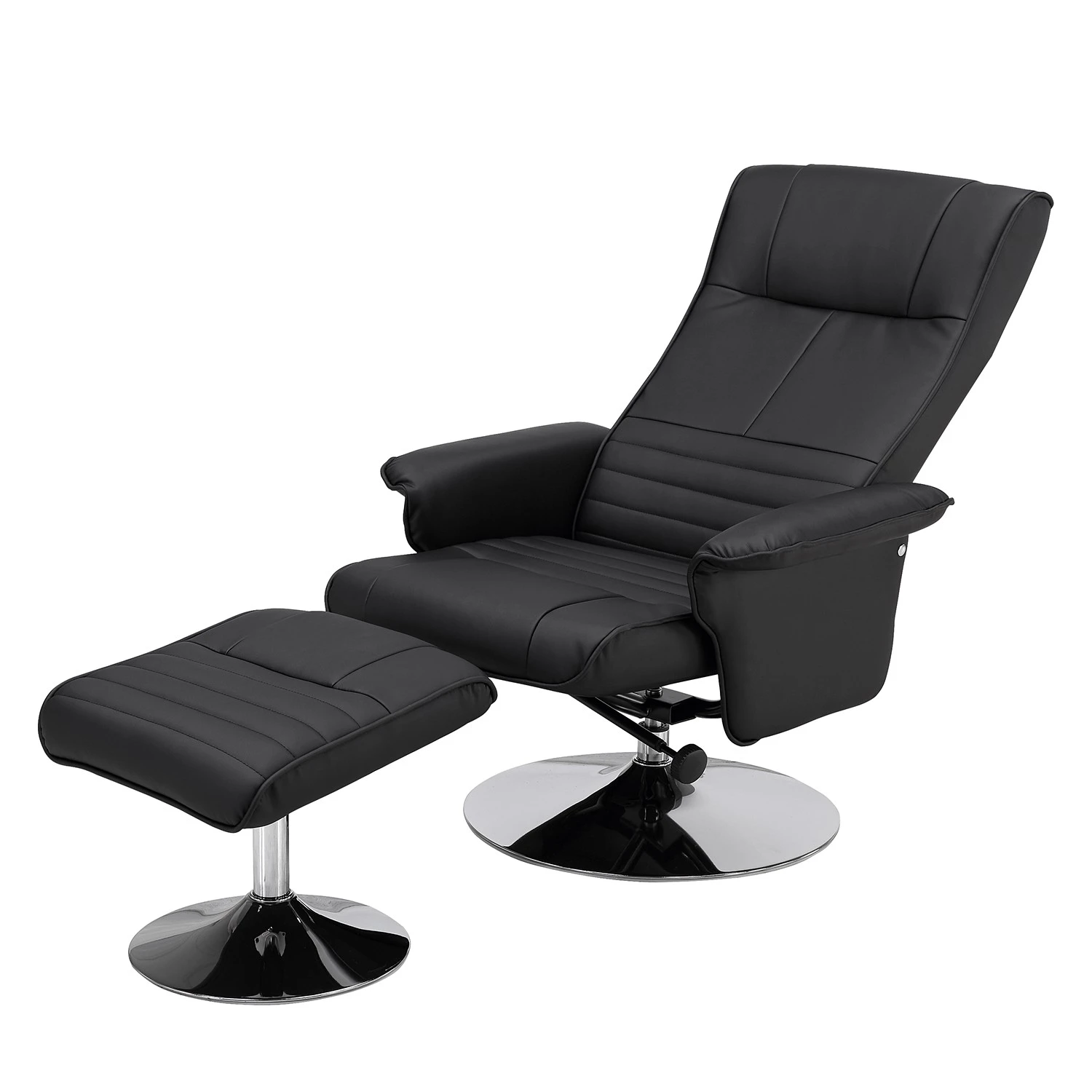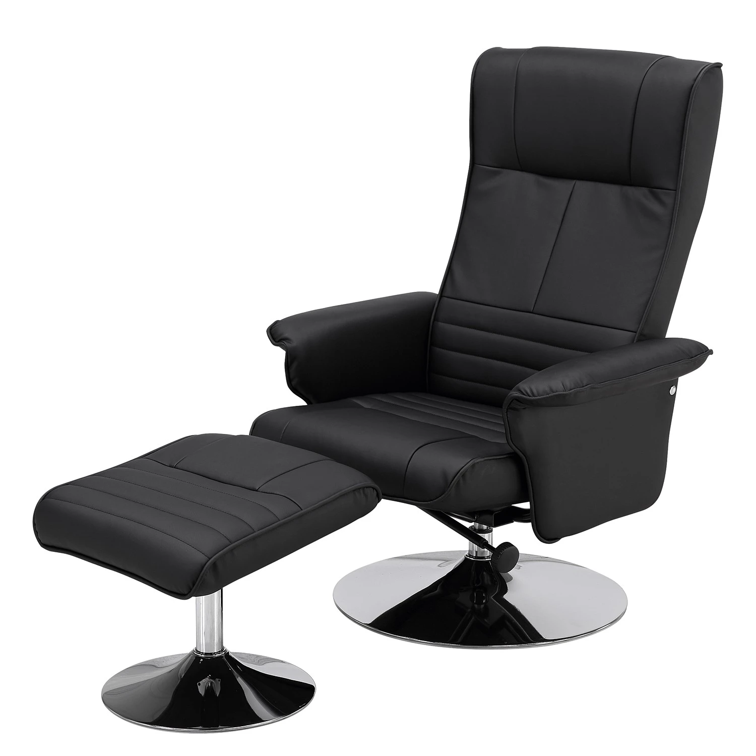 Fredriks Fauteuil de relaxation Devato avec repose-pieds – Imitation cuir noir – Confort optimal