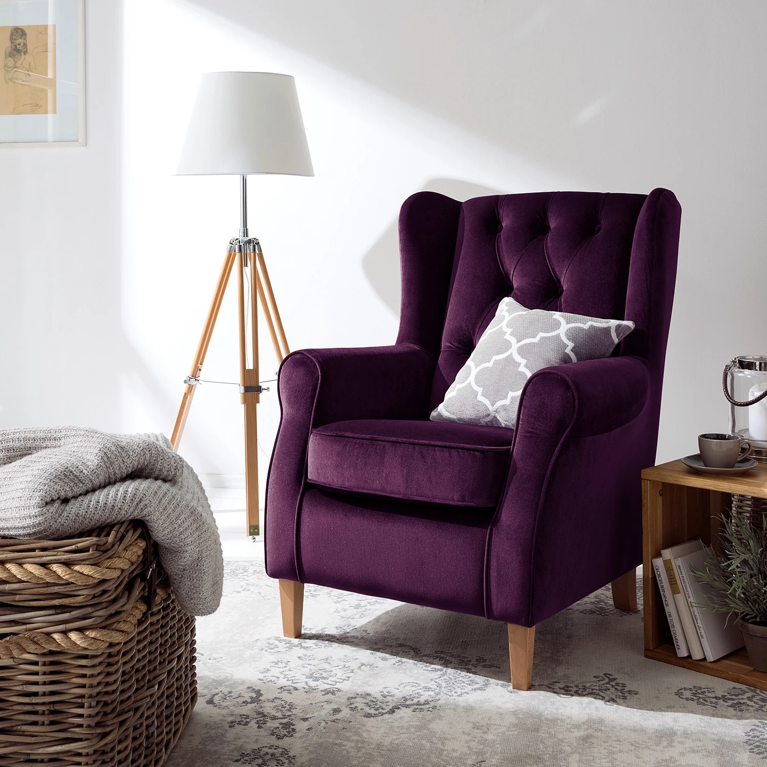 - Le Fauteuil à oreilles Luro de Maison Belfort allie confort et style avec son revêtement en velours luxueux et ses oreilles rembourrées pour un soutien optimal.