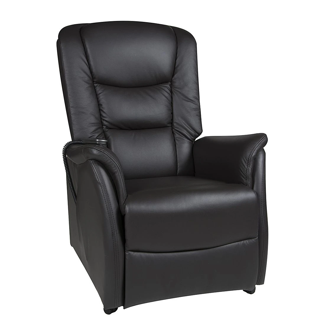 Modoform Fauteuil TV Sylt Motorisé – Cuir Synthétique Noir, Design Érable/Orange – Siège Relax avec Assistance pour se Lever