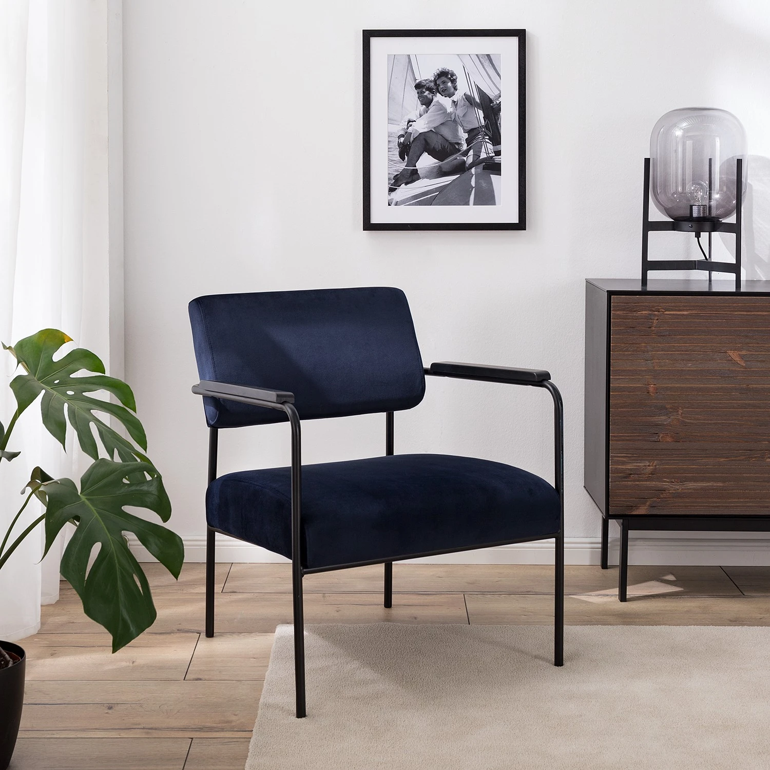 Mørteens Fauteuil Narpes Velours Bleu Foncé – Confort et Élégance pour Votre Salon