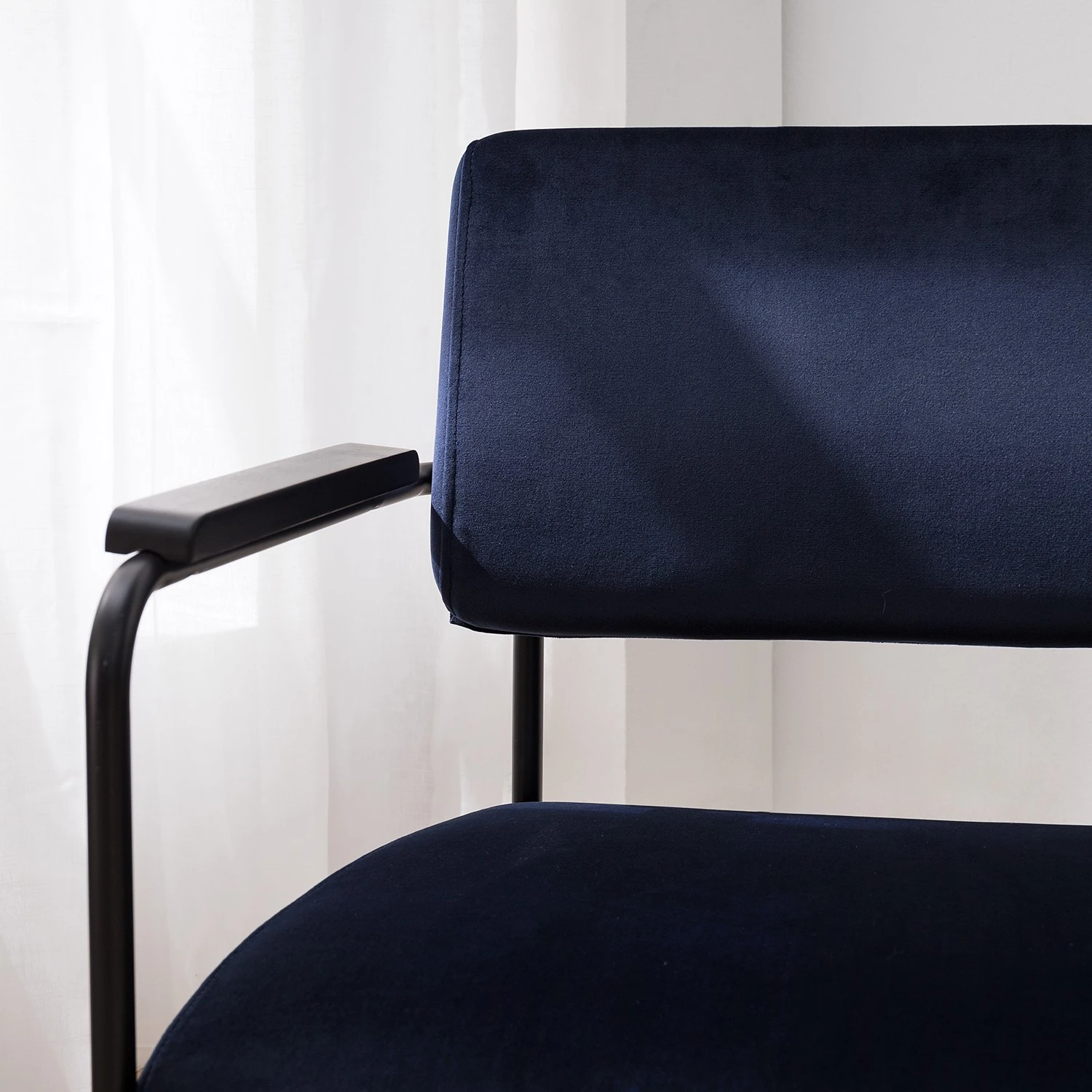 - Le Mørteens Fauteuil Narpes allie style et confort grâce à son tissu velours luxueux et sa couleur bleu foncé élégante, idéale pour un intérieur sophistiqué.