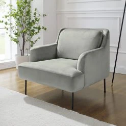 Fredriks Fauteuil Bleecker – Velours Gris, Fauteuil 1 Place Confortable et ÉlĂ©gant